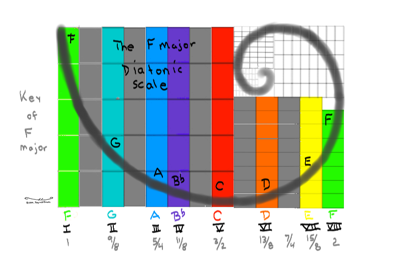 F Major Diatonic Scale - Whirling Squares of the Golden Rectangle