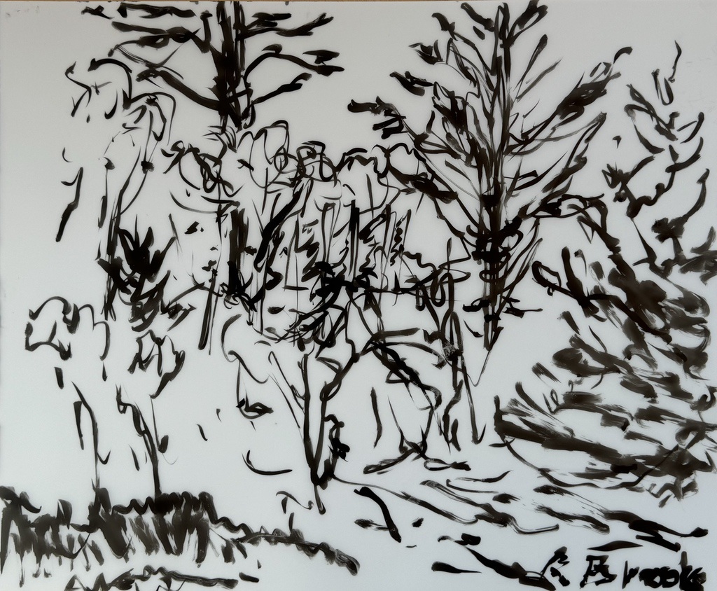 "Palm Desert, Olive Tree, #119 digital" brush & sepia ink 14" x 17"