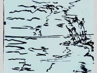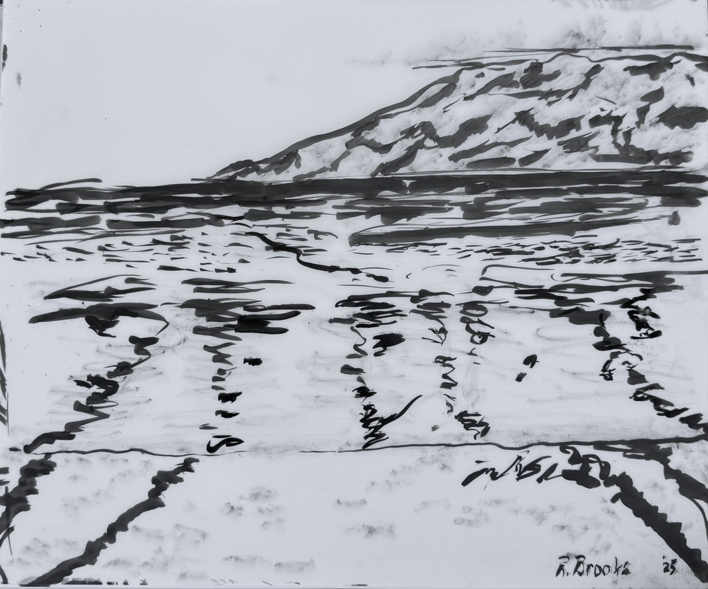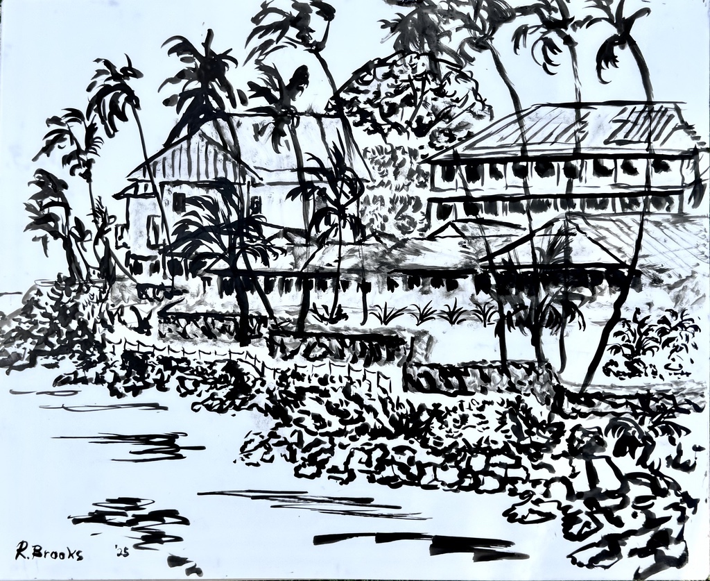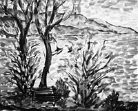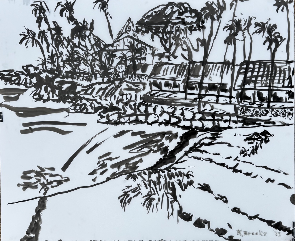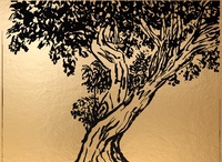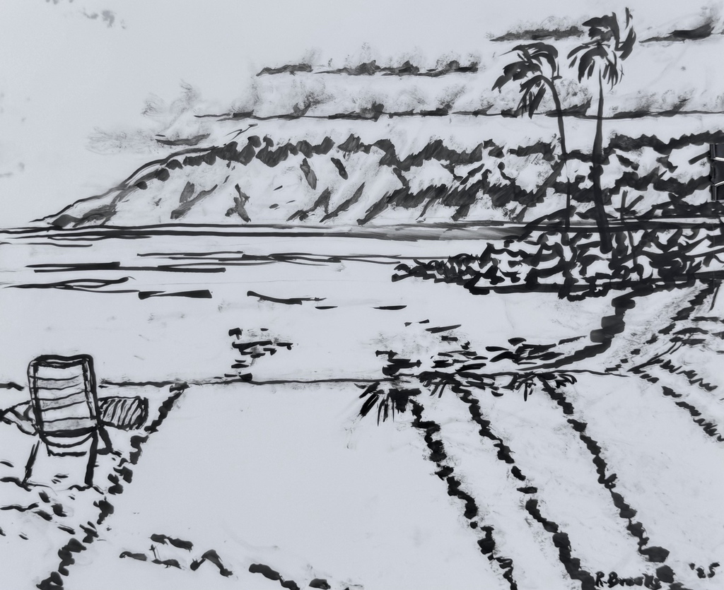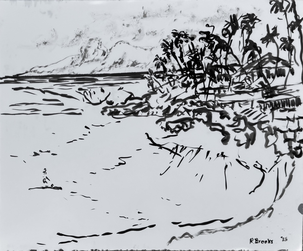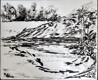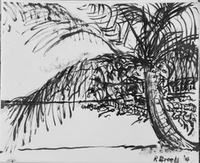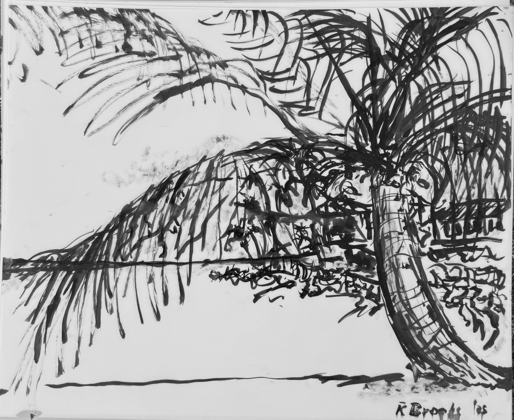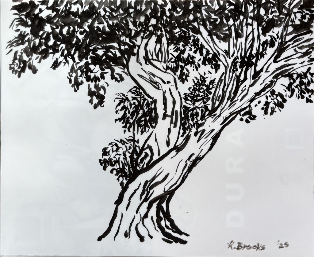 "Palm Desert, Olive Tree, #122 digital" brush & sepia ink 14" x 17"