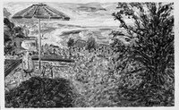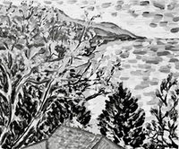 "Fresno, Lemon Tree, #1" brush & sepia ink 14" x 17"