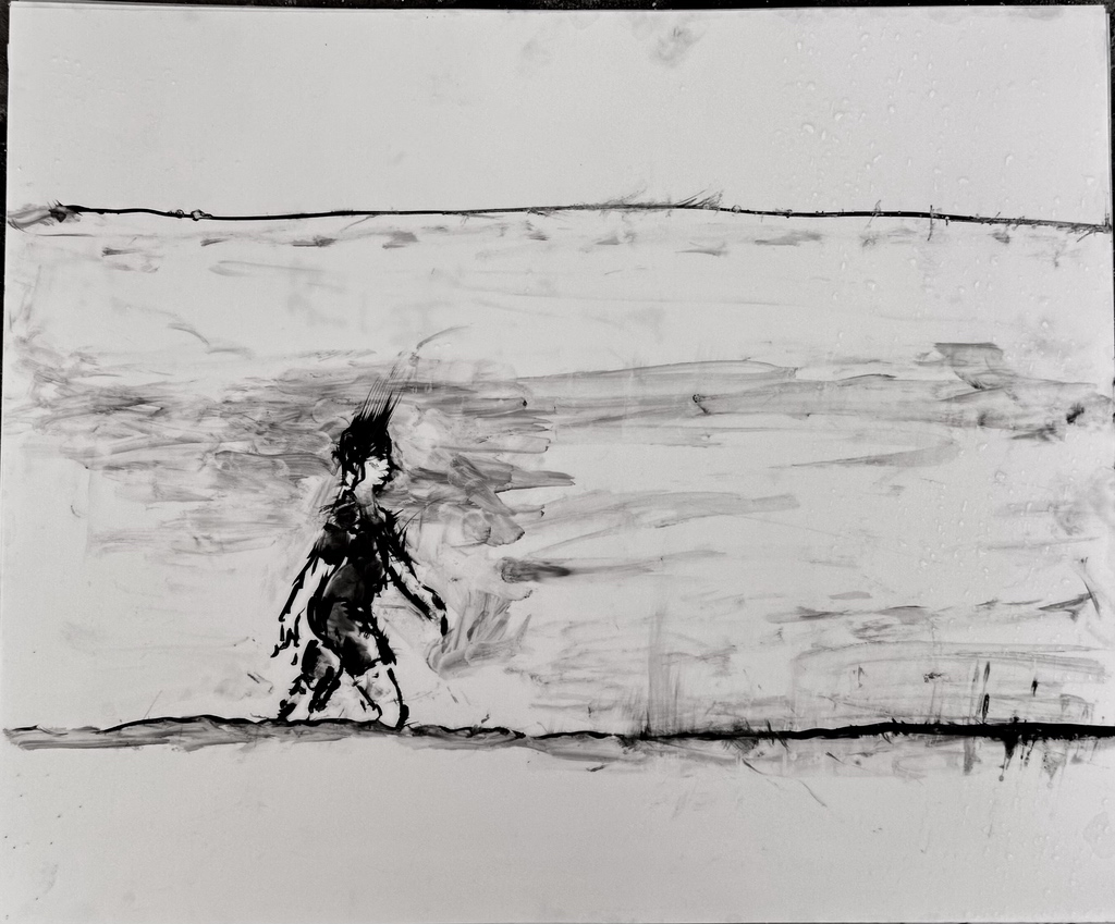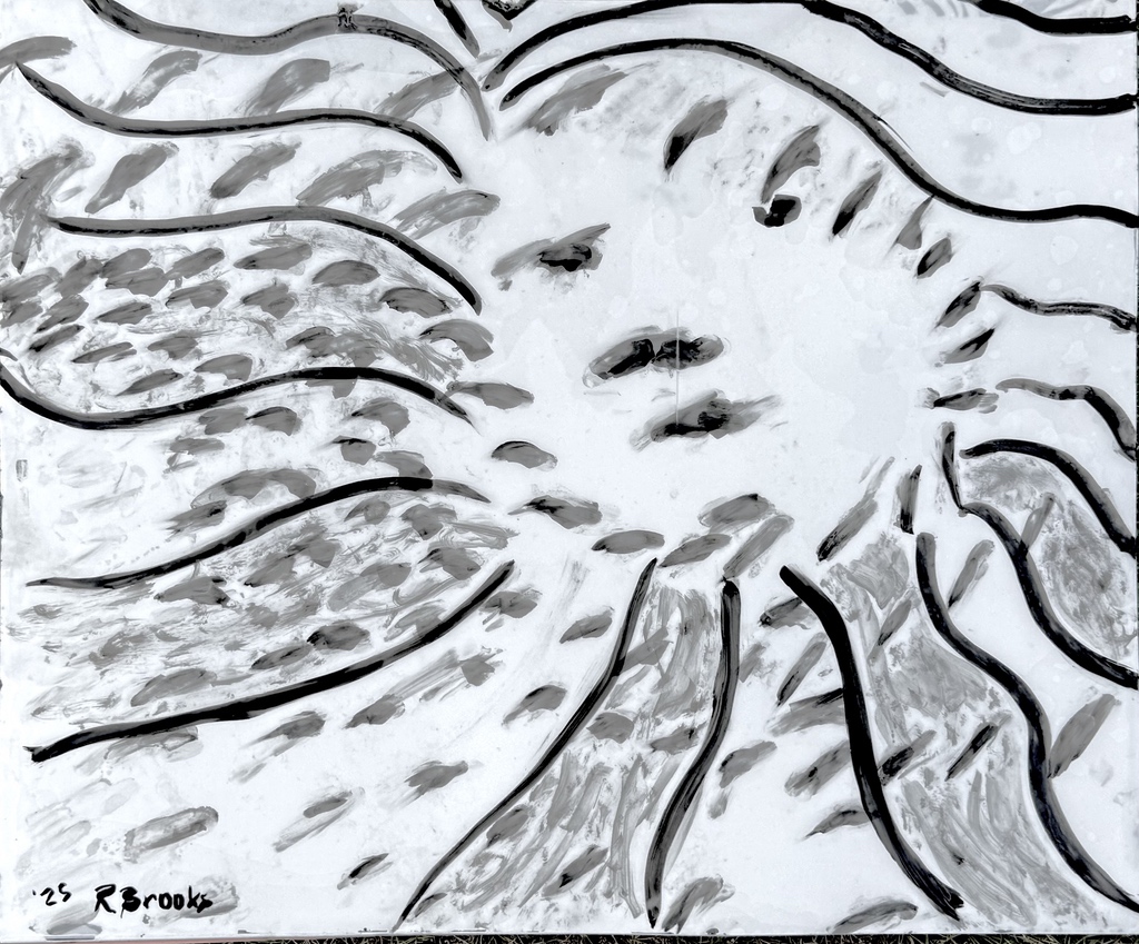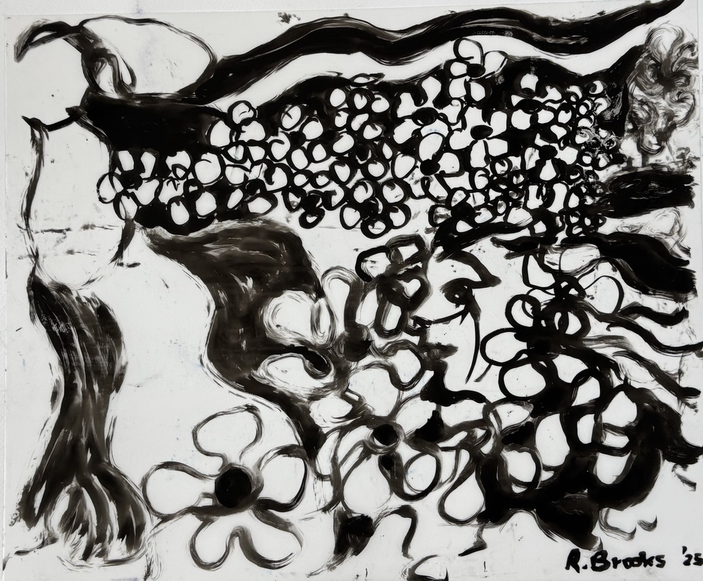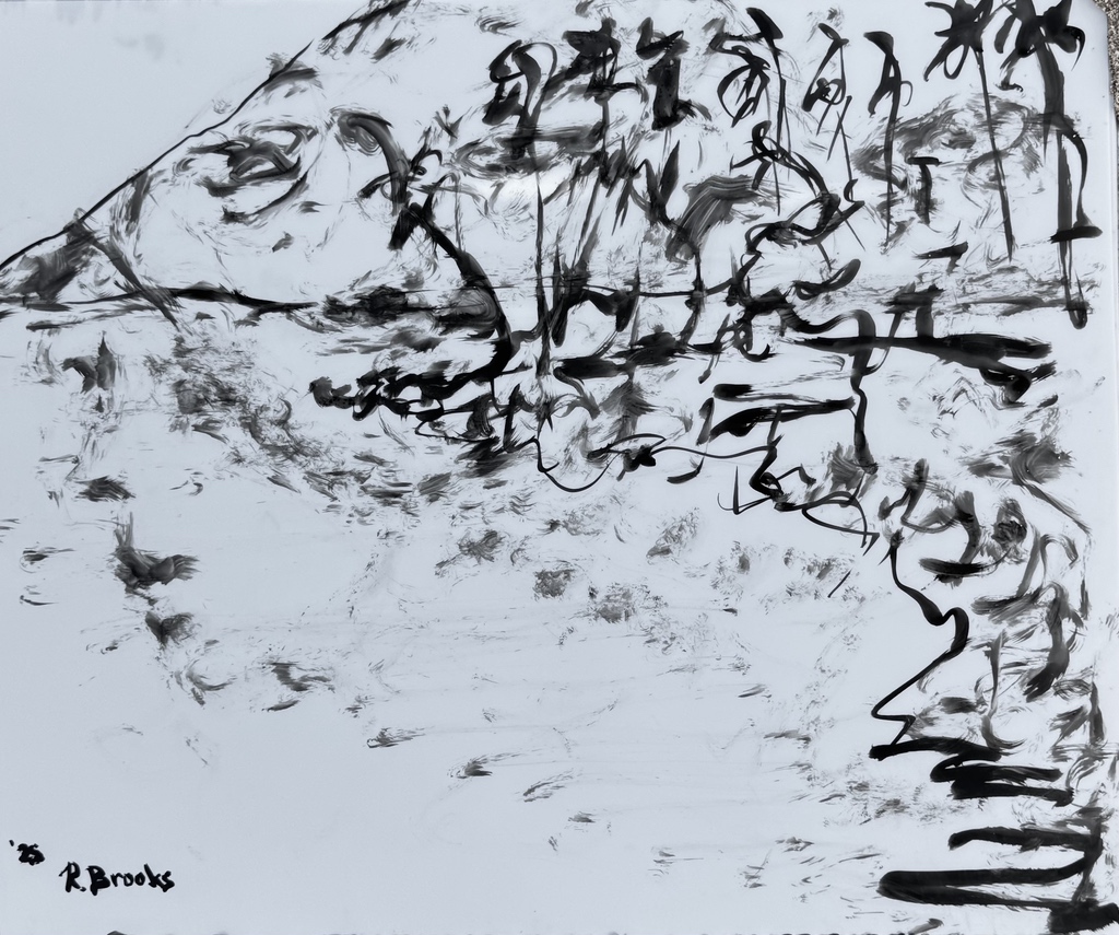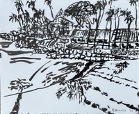 "Palm Desert, Olive Tree BW, #122BW" digital re-work of brush & sepia ink 14" x 17"