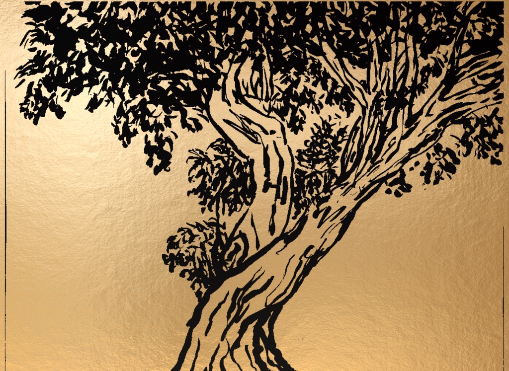 "Palm Desert, Olive Tree, #120 digital" brush & sepia ink 14" x 17"