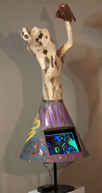 Acrylic, recycled aluminum scrap on wood base